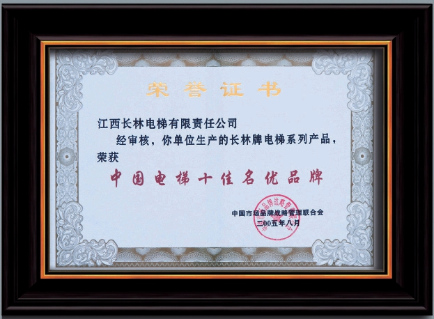2005年中國(guó)電梯十佳名優(yōu)產(chǎn)品