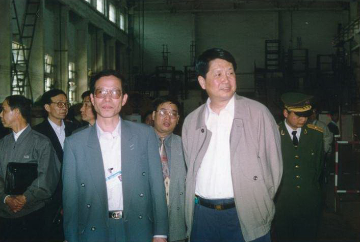 5、1997年4月16日,時(shí)任江西省省長(zhǎng)舒惠國(guó)(右)在市委書記、市長(zhǎng)丁耀民的陪同下來(lái)廠調(diào)研