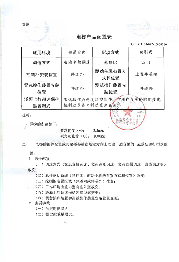 TKJ(W)1600-2.5-JXVF無(wú)機(jī)房客梯合格證