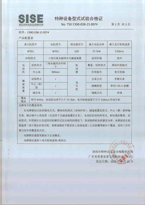 WTD1曳引機(jī)合格證