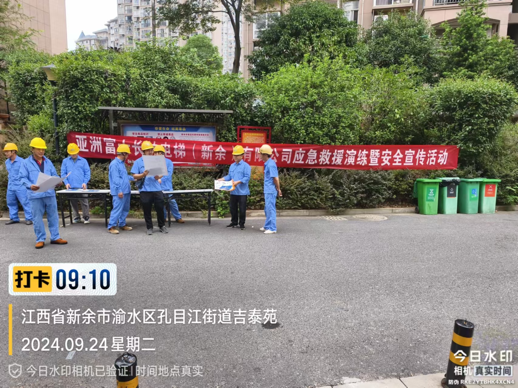 根據(jù)新余市市場監(jiān)督管理局關于開展2024年“應急救援演練暨安全宣傳”活動的通知精神和公司開展質量整頓工作的要求,我司工程部于9月24日上午在新余高新區(qū)吉泰苑小區(qū)開展了應急救援演練及安全文明乘梯宣傳活動,工程部部長、項目經(jīng)理、維保人員,吉泰苑小區(qū)物業(yè)管理人員和小區(qū)業(yè)主參加了本次活動,在活動現(xiàn)場,工程部維保人員通過發(fā)放宣傳單和現(xiàn)場講解答疑的方式,給用戶講解安全乘梯知識,給物業(yè)管理人員講解電梯安全管理和隱患排查報告的要求,讓小區(qū)業(yè)主和物業(yè)對電梯安全運行和電梯故障處理流程有了進一步了解。