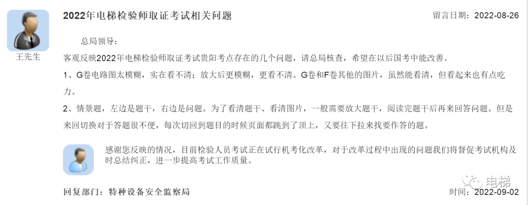 總局回復(fù):電梯檢驗(yàn)師取證考試問(wèn)題;檢驗(yàn)師考試題目是否超出