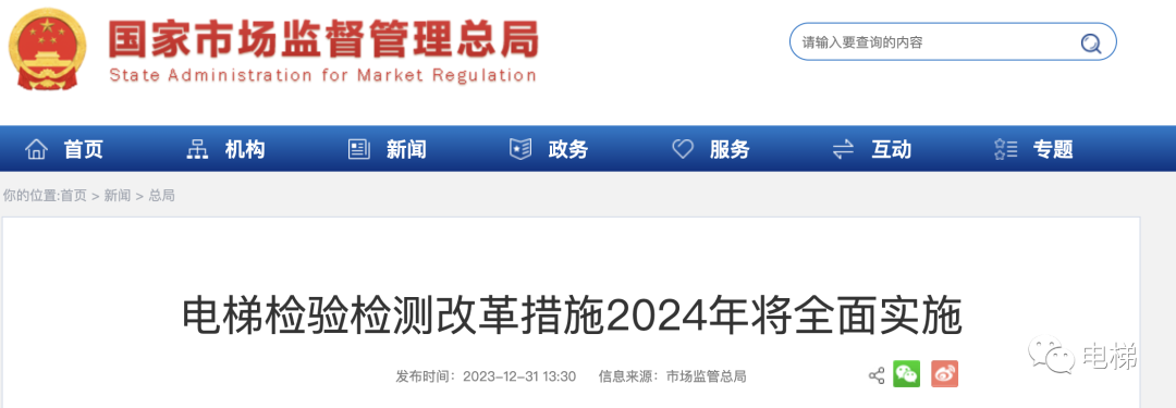 市場(chǎng)監(jiān)管總局:電梯檢驗(yàn)檢測(cè)改革措施2024年將全面實(shí)施